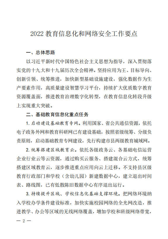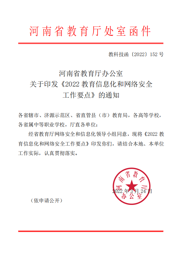 河南省教育厅办公室关于印发《2022教育信息化和网络安全工作要点》的通知