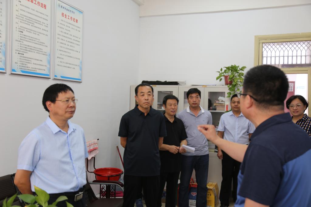 校领导深入远程录取工作室、咨询室,仔细询问了录取工作流程,详细查看了录取进程和咨询情况,招生就业处处长武金娟汇报了我校招生录取工作进展情况。