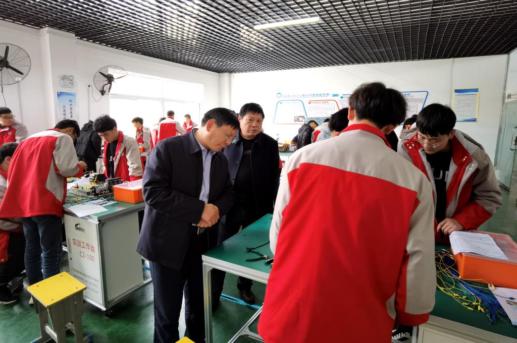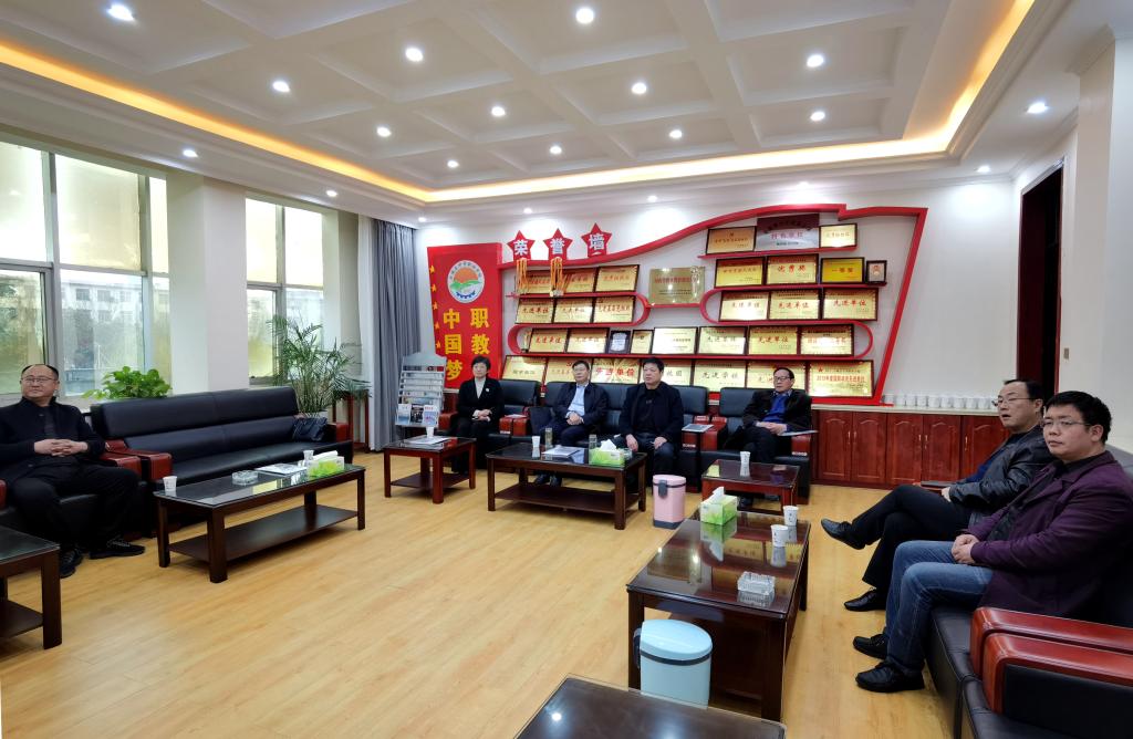 在方城县中等职业学校校长李庆功等校领导的陪同下,李清臣校长一行参观了该校实训中心并与师生亲切交谈,方城县教育局局长吴东升参加座谈会,双方交流了办学经验并就深入开展中高职协同育人发展,建设“优质生源基地”达成合作意向。
