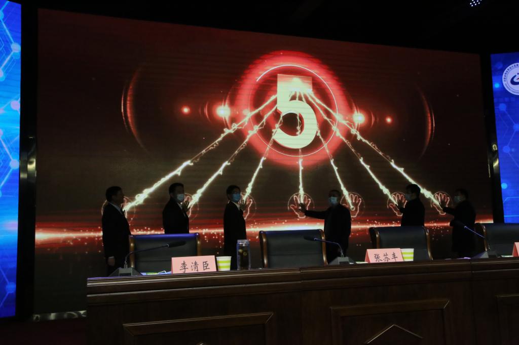 仪式上,主席台就座领导共同按亮标志河南省网络营销与直播电商产教融合专业联盟启动的大屏幕。