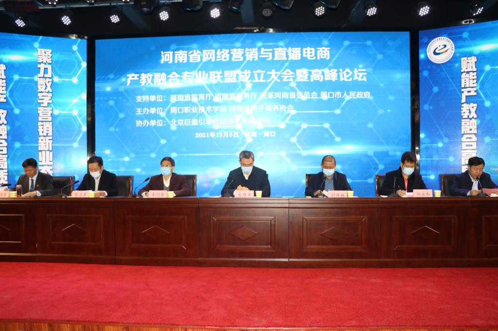12月3日上午,河南省网络营销与直播电商产教融合专业联盟成立大会暨高峰论坛在我校开元校区学前与艺术教育学院演播厅成功举办。周口市副市长秦胜军,民革河南省委员会二级巡视员刘倬林,河南省教育厅职成处处长秦剑臣,河南省商务厅电商处一级调研员郭永和,河南省电子商务协会秘书长张苏丰,我校党委书记刘士欣、校长李清臣、党委副书记赵振然、副校长李明臣等领导出席活动。兄弟院校同仁、学会协会代表、企业代表等百余人参加活动。