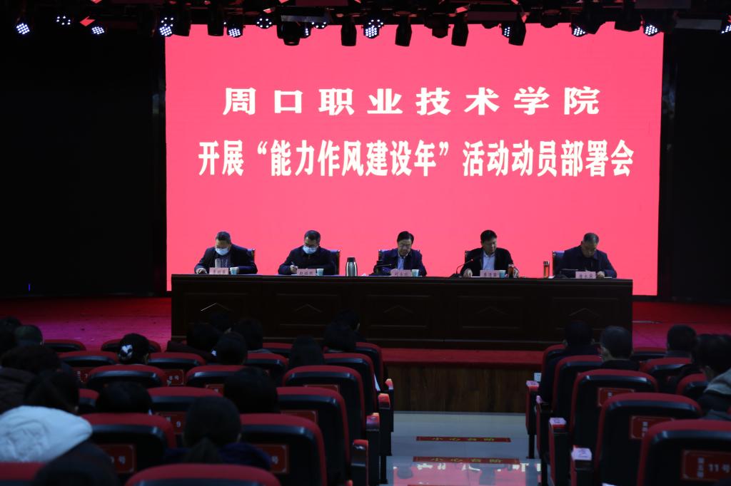 2021年12月30日上午,我校在开元校区学前与艺术教育学院演播厅召开周口职业技术学院开展“能力作风建设年”活动动员部署会,对学校“能力作风建设年”活动进行安排部署。全体在周校领导出席会议,全校副科级以上干部参加会议。会议由校长李清臣主持。