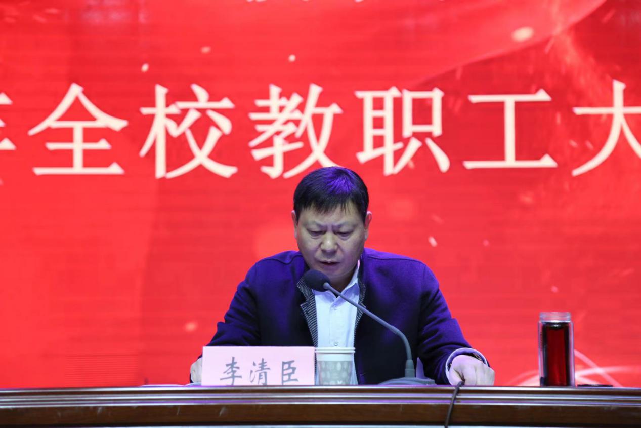 2月20日上午,为进一步统一思想、振奋精神、凝聚共识,明确目标、高标准做好2022年工作,学校在开元校区砺德厅召开了2022年全校教职工大会。会议由校长李清臣主持。