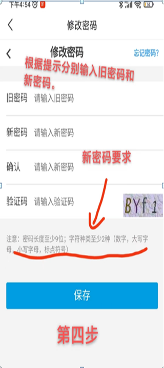 第四步:按照提示完成输入后保存,重新用修改后的密码登陆。